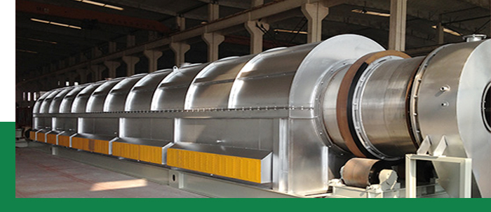 濕物料從干燥機(jī)一端投入后,在內(nèi)筒均布的抄板器翻動(dòng)下,物料在干燥器內(nèi)均勻分布與分散,并與并流(逆流)的熱空氣充分接觸,加快了干燥傳熱,傳至推動(dòng)力。在干燥過(guò)程中,物料在帶有傾斜度的抄板和熱氣流的作用下,可調(diào)控地運(yùn)動(dòng)至干燥機(jī)另一段星形卸料閥排出成品。