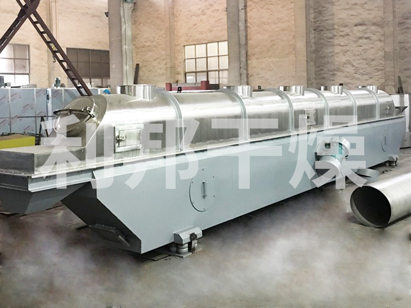 物料自進(jìn)料進(jìn)口進(jìn)入機(jī)內(nèi),在振動(dòng)力作用下,物料沿水平面流化床拋擲,向前連續(xù)運(yùn)動(dòng),熱風(fēng)向上穿過(guò)流化床同濕物料換熱后,濕空氣經(jīng)旋風(fēng)分離器除塵后由排風(fēng)1:3排出。干燥物料由排料進(jìn)口排出。
