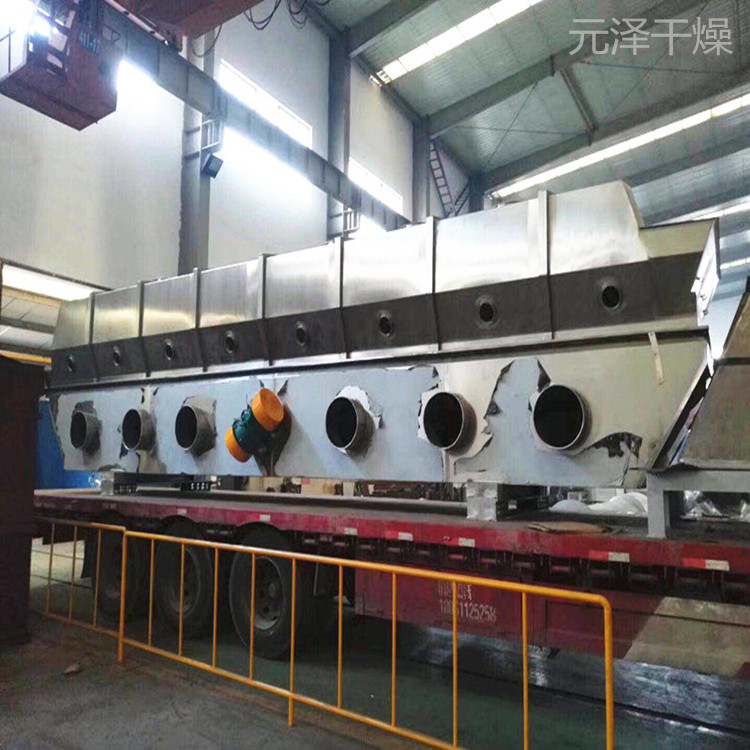 目前應(yīng)用較廣的臥式振動(dòng)流化床干燥機(jī),形狀和基本結(jié)構(gòu)與普通臥式流化床干燥機(jī)很相似。區(qū)別在于振動(dòng)流化床整個(gè)機(jī)體通過(guò)彈簧支撐在底座上,多孔板稍向出料端傾斜,機(jī)體一側(cè)或兩側(cè)裝有振動(dòng)電機(jī)。物料依靠機(jī)械振動(dòng)和穿孔氣流雙重作用流化,并在振動(dòng)作用下向前運(yùn)動(dòng)。