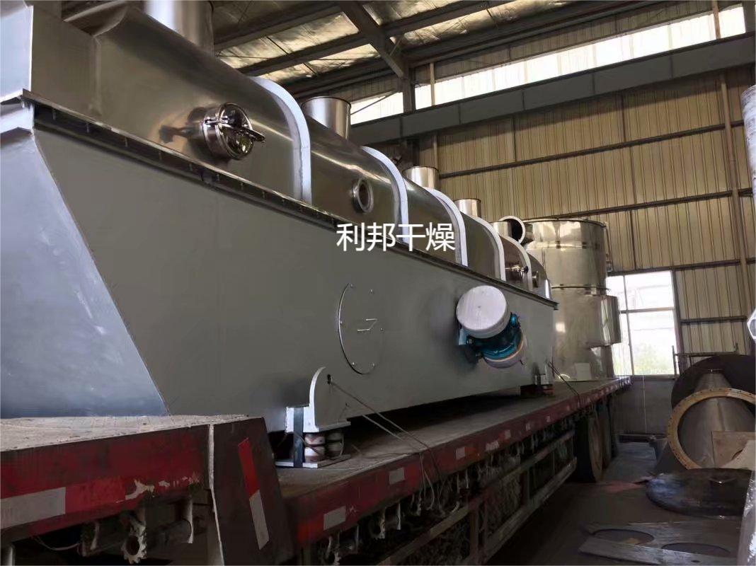 物料自進(jìn)料口進(jìn)入機(jī)內(nèi), 在振動(dòng)力作用下, 物料沿水平方向拋擲向前連續(xù)運(yùn)動(dòng),熱風(fēng)向上穿過流化床同濕料換熱后, 濕空氣經(jīng)旋風(fēng)分離器除塵后由排風(fēng)口排出, 干燥物料由排料口排出。