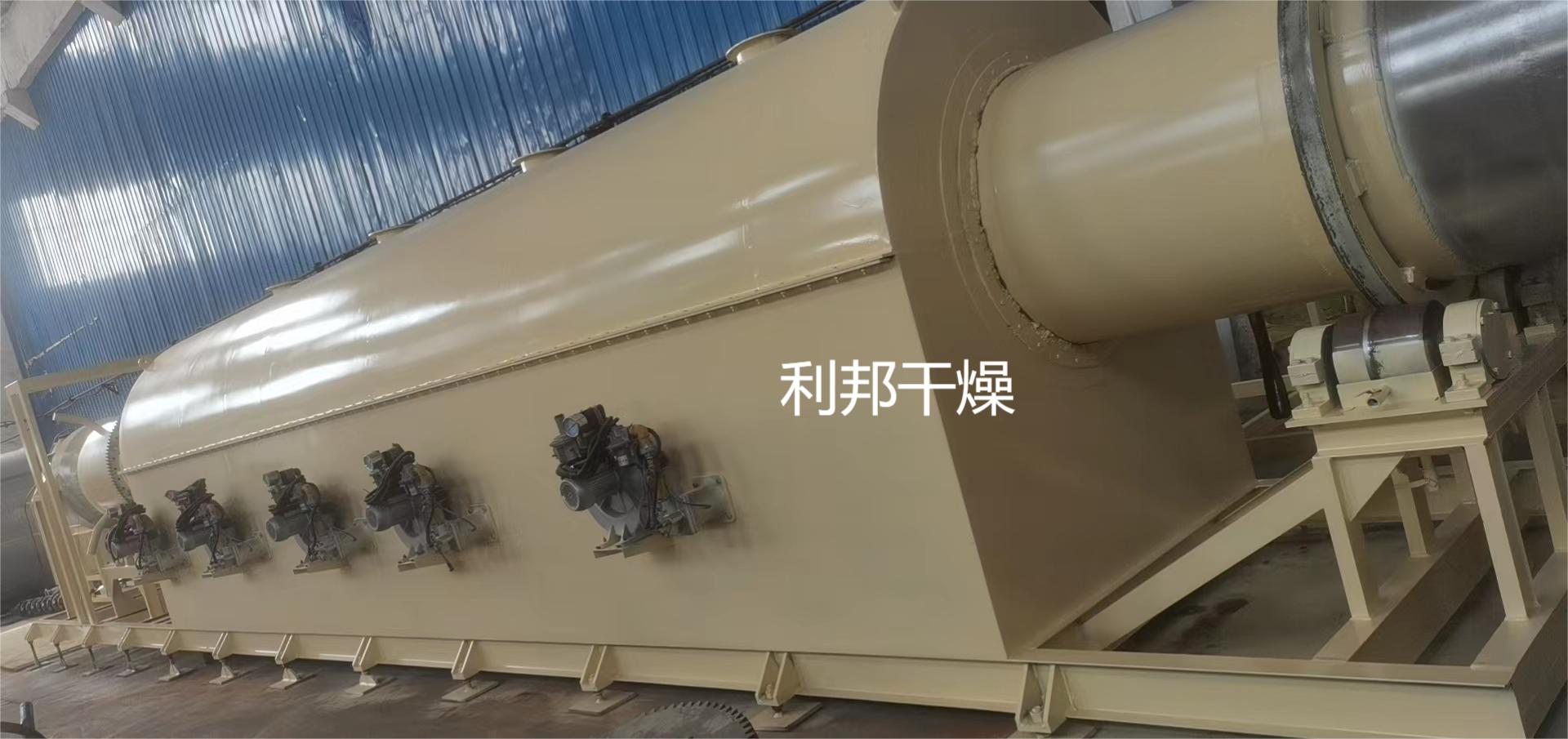 主要由供熱源、上料機、進料機、回轉(zhuǎn)滾筒、出料機、引風機、卸料器和配電柜構(gòu)成;脫水后的濕物料從干燥機一端投入后,在內(nèi)筒均布的抄板器翻動下,物料在干燥器內(nèi)均勻分布與分散,并與并流(逆流)的熱空氣充分接觸,加快了干燥傳熱,傳質(zhì)推動力。在干燥過程中,物料在帶有傾斜度的抄板和熱氣流的作用下,可調(diào)控地運動至干燥機另一段星形卸料閥排出成品。