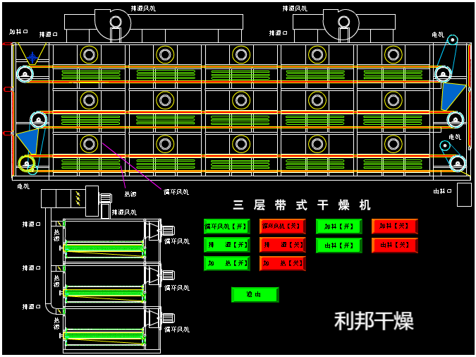 (2)多級(jí)帶式干燥機(jī):多級(jí)帶干燥實(shí)質(zhì)上是由數(shù)臺(tái)單級(jí)帶干機(jī)串聯(lián)組成,其操作原理與單級(jí)帶干機(jī)相同。