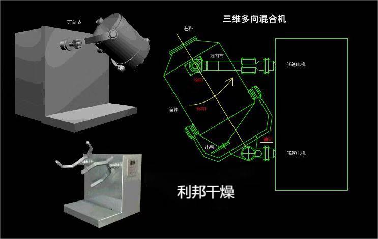 結(jié)構(gòu):該機由機座、傳動系統(tǒng)、電器控制系統(tǒng)、多向運動機構(gòu)、混合筒等部件組成。與物料直接接觸的混合筒采用優(yōu)質(zhì)不銹鋼材料制造,桶體內(nèi)外壁均經(jīng)鏡面拋光。
