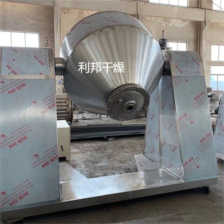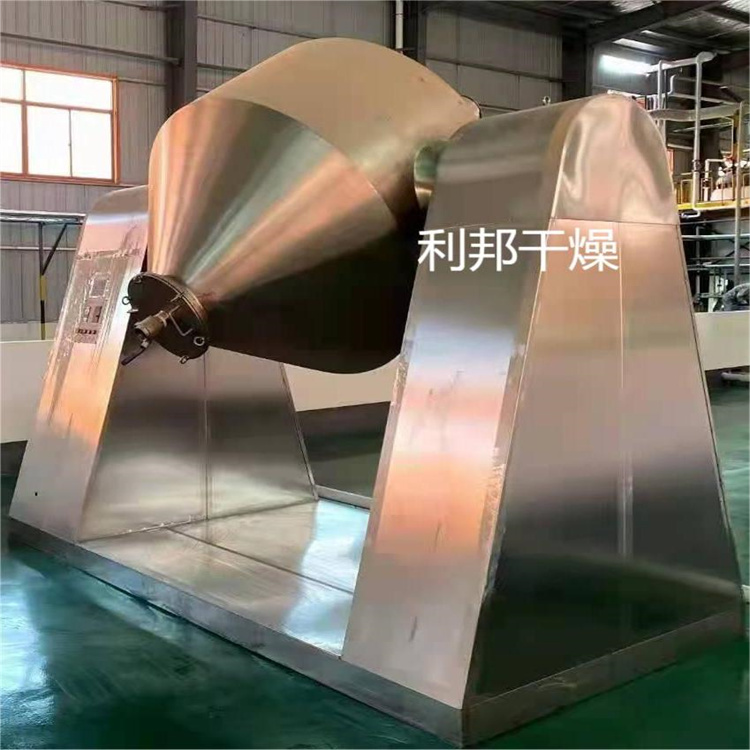 雙錐回轉(zhuǎn)真空干燥機(jī)為雙錐形的回轉(zhuǎn)罐體,罐內(nèi)在真空狀態(tài)下,向夾套內(nèi)通入蒸汽或熱水進(jìn)行加 熱,熱量通過(guò)罐體內(nèi)壁與濕物料接觸,濕物料吸熱后蒸發(fā)的水汽,通過(guò)真空泵經(jīng)真 空排氣管被抽走。由于罐體內(nèi)處于真空狀態(tài),且罐體的回轉(zhuǎn)使物料不斷的上下內(nèi)外 翻動(dòng),故加快了物料的干燥速度,提高干燥效率,達(dá)到均勻干燥的目的。雙錐回轉(zhuǎn) 真空干燥機(jī)系統(tǒng)主要由雙錐回轉(zhuǎn)真空干燥機(jī)、冷凝器、除塵器、真空抽氣系統(tǒng)、加 熱系統(tǒng)、冷卻系統(tǒng)、電控系統(tǒng)等組成。