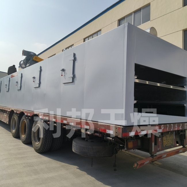 輸送帶系統(tǒng):物料通過進料裝置均勻分布在輸送帶上(單層或多層),輸送帶以可調速的速度移動,使物料依次通過干燥區(qū)的不同溫區(qū)。
