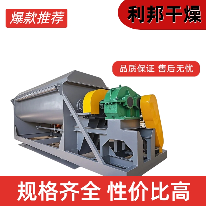 空心軸上密集排列著楔型中空漿葉,熱介質(zhì)經(jīng)空心軸流經(jīng)漿葉。單位有效容積內(nèi)傳熱面積很大,熱介質(zhì)溫度從-40℃到320℃,可以是水蒸汽,也可以是液體型:如熱水、導(dǎo)熱油等。間接傳導(dǎo)加熱,沒有攜帶空氣帶走熱量,熱量均用來加熱物料。熱量損失僅為通過器體保溫層向環(huán)境的散熱。楔型漿葉傳熱面具有自清潔功能。物料顆粒與楔型面的相對運(yùn)動產(chǎn)生洗刷作用,能夠洗刷掉楔型面上附著物料,使運(yùn)轉(zhuǎn)中一直保持著清潔的傳熱面。漿葉干燥機(jī)的殼體為Ω型,殼體內(nèi)一般安排二到四根空心攪拌軸。殼體有密封端蓋與上蓋,防止物料粉塵外泄而充分發(fā)揮作用。