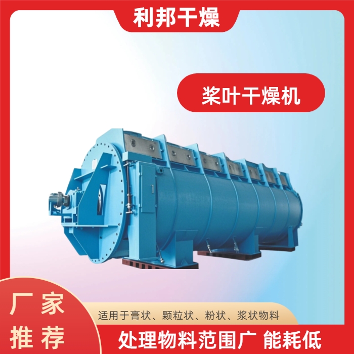 空心軸上密集排列著楔型中空漿葉,熱介質(zhì)經(jīng)空心軸流經(jīng)漿葉。單位有效容積內(nèi)傳熱面積很大,熱介質(zhì)溫度從-40℃到320℃,可以是水蒸汽,也可以是液體型:如熱水、導(dǎo)熱油等。間接傳導(dǎo)加熱,沒(méi)有攜帶空氣帶走熱量,熱量均用來(lái)加熱物料。熱量損失僅為通過(guò)器體保溫層向環(huán)境的散熱。楔型漿葉傳熱面具有自清潔功能。物料顆粒與楔型面的相對(duì)運(yùn)動(dòng)產(chǎn)生洗刷作用,能夠洗刷掉楔型面上附著物料,使運(yùn)轉(zhuǎn)中一直保持著清潔的傳熱面。漿葉干燥機(jī)的殼體為Ω型,殼體內(nèi)一般安排二到四根空心攪拌軸。殼體有密封端蓋與上蓋,防止物料粉塵外泄而充分發(fā)揮作用。