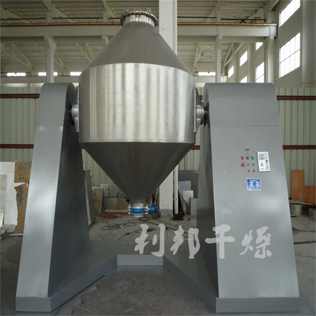 雙錐形筒體:由兩個(gè)對稱的圓錐體與中間圓柱體連接而成,筒體可繞水平軸旋轉(zhuǎn)(轉(zhuǎn)速通常為 5-15r/min),確保物料均勻翻動。